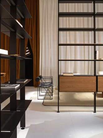 Linear, leicht und von strenger Eleganz geprägt, ist ALINE ein Entwurf von Dante Bonuccelli. Der Architekt und Designer argentinischer Herkunft stellt sich ein Bücherregal als diskrete Raumkulisse für Wohn- oder Arbeitsräume vor. Das System wird durch eine schlanke und essentielle Aluminiumstruktur in verschiedenen Lackierungen ausgezeichnet.