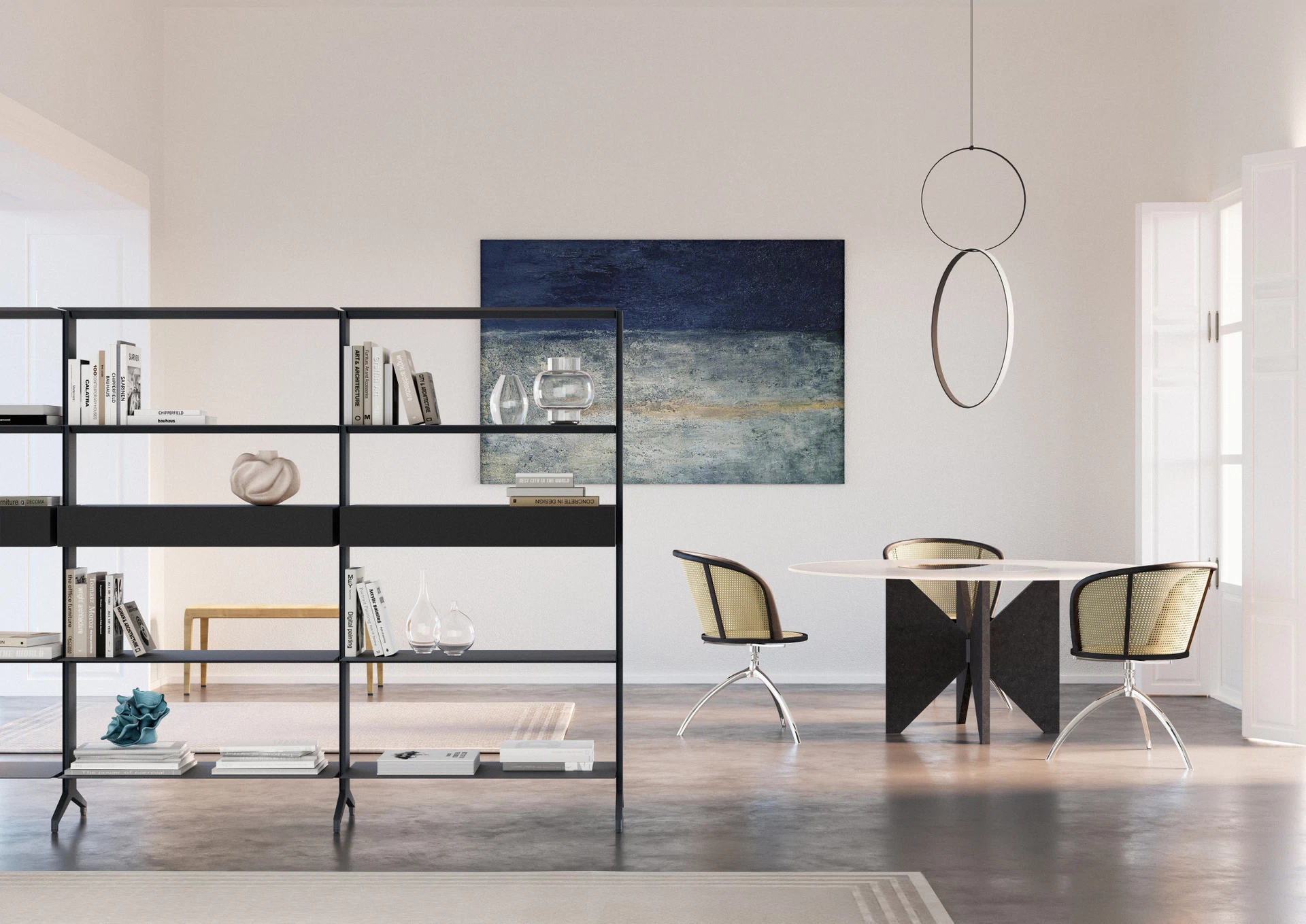 Im Projekt ALINE wird der Ansatz von Dante Bonuccelli deutlich, der auf einer essenziellen, strengen und zutiefst architektonischen Designhaltung beruht. Das Regalsystem ist als modulares System konzipiert, das die Beziehung zwischen Struktur, Raum und Funktion in den Vordergrund stellt und die formale Sprache auf das Wesentliche reduziert. Stranggepresstes Aluminium wird zum Instrument konstruktiver Präzision und kompositorischer Freiheit und ermöglicht flexible Konfigurationen, die den Raum mit Zurückhaltung und Kontinuität organisieren, ohne sich visuell aufzudrängen.