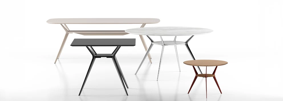 Eine kompositorische Intuition, die zu einem Tisch-Familie führt, das in Form, Größe und Verwendung sehr flexibel ist. Der Entwurf BIPLANE entstand genau aus dieser Idee: eine breit gefächerte und differenzierte Serie von Modellen anzubieten – tadellos, um jeden Raum zu ergänzen. Die Beine aus druckgegossenem Aluminium sind an einer zentralen Untertischfläche und an der Tischplatte befestigt, wodurch eine solide Struktur entsteht. Die Anzahl der Beine ist variabel und hängt von der Größe der Tischplatte ab. Es sind auch verschiedene Ausführungen für eine weitere Personalisierung erhältlich.