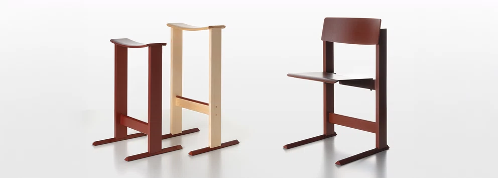 Die geometrische Silhouette, die die gesamte Kollektion auszeichnet, wird durch die Natürlichkeit der verwendeten Materialien ausgeglichen; LIRA besteht aus massivem Eschenholz mit gebogenen Eschenholzelementen und ist in natur oder offenporig lackierter Ausführung erhältlich. Der Stuhl und die Hocker werden von Stahlfüßen getragen, die in verschiedenen Farben gerauht oder glänzend lackiert sind. Mit LIRA hat sich Daniel Rybakken das Ziel gesetzt, eine essentielle Kollektion mit einer ikonischen Silhouette zu schaffen.
