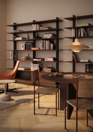 Aus der Weiterentwicklung des Konzepts des Spaghetti chair entstanden, kombiniert die Kollektion PALUDIS, die in verschiedenen Bauarten abgewandelt wurde, die minimalistische lackierte oder verchromte Metallstruktur mit dem speziellen, für Sitzfläche und Rückenlehne gewählten Material: ein besonderes „Korbgeflecht“ aus recyceltem geflochtenem Papier, das in einer breiten Farbpalette erhältlich ist. Ihre doppelte Persönlichkeit, ein Zusammenspiel aus Tradition und Design, macht sie ideal für die Einrichtung unterschiedlichster Räume.