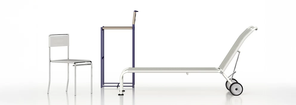 Widerstandsfähigkeit und Zweckmäßigkeit prägen die Outdoor-Kollektion GREEN. Strukturen aus Edelstahl, gebürstet oder lackiert, ergeben stapelbare Stühle, mit oder ohne Armlehnen, bequeme Sessel und Hocker, mit Sitzfläche und Rückenlehne aus PVC-beschichtetem Polyesternetz. Die Kollektion umfasst auch eine elegante Liege, deren markantes Element das Design der großen Rollen ist, die von denen der Caddies auf Golfplätzen inspiriert sind.
