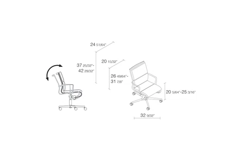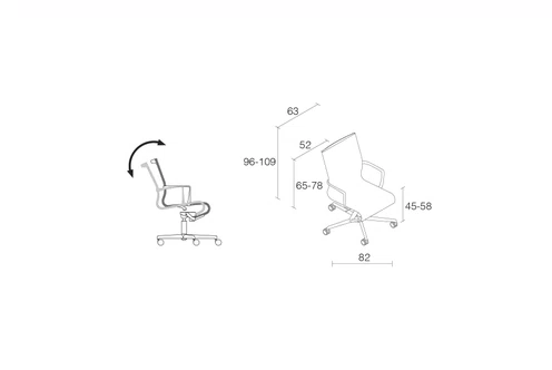 Height adjustable chair with arms, with soft braking castors and 5-star swivel base with tilting mechanism. Structure made of extruded aluminium profile and die-cast aluminium elements. Seat and back in PVC covered polyester mesh, in eco-leather Serge Ferrari®, in fabric Camira®, Reviva® or Kvadrat® or in Pelle Frau® leather.