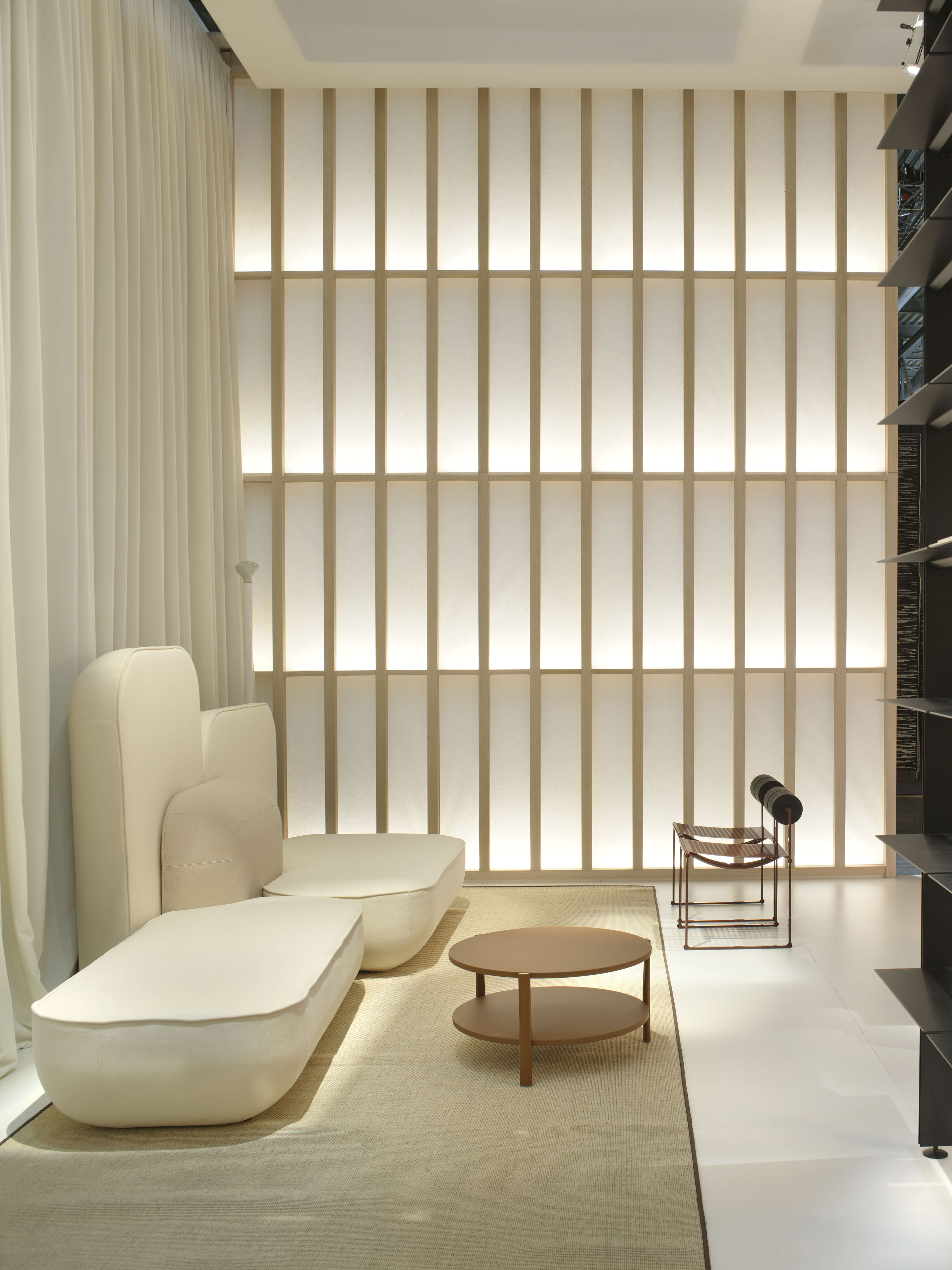 A la fin du parcours, Spaghetti se révèle dans une couleur fluorescente qui oscille entre le violet et l'orange sur un piédestal, racontant la force élastique des bandes qui les composent. Enfin, la salle consacrée à Frame d'Alberto Meda est un tunnel qui rappelle son parcours vers la légèreté et le dynamisme, et la capacité de partir d'une idée de design ou d'une silhouette,