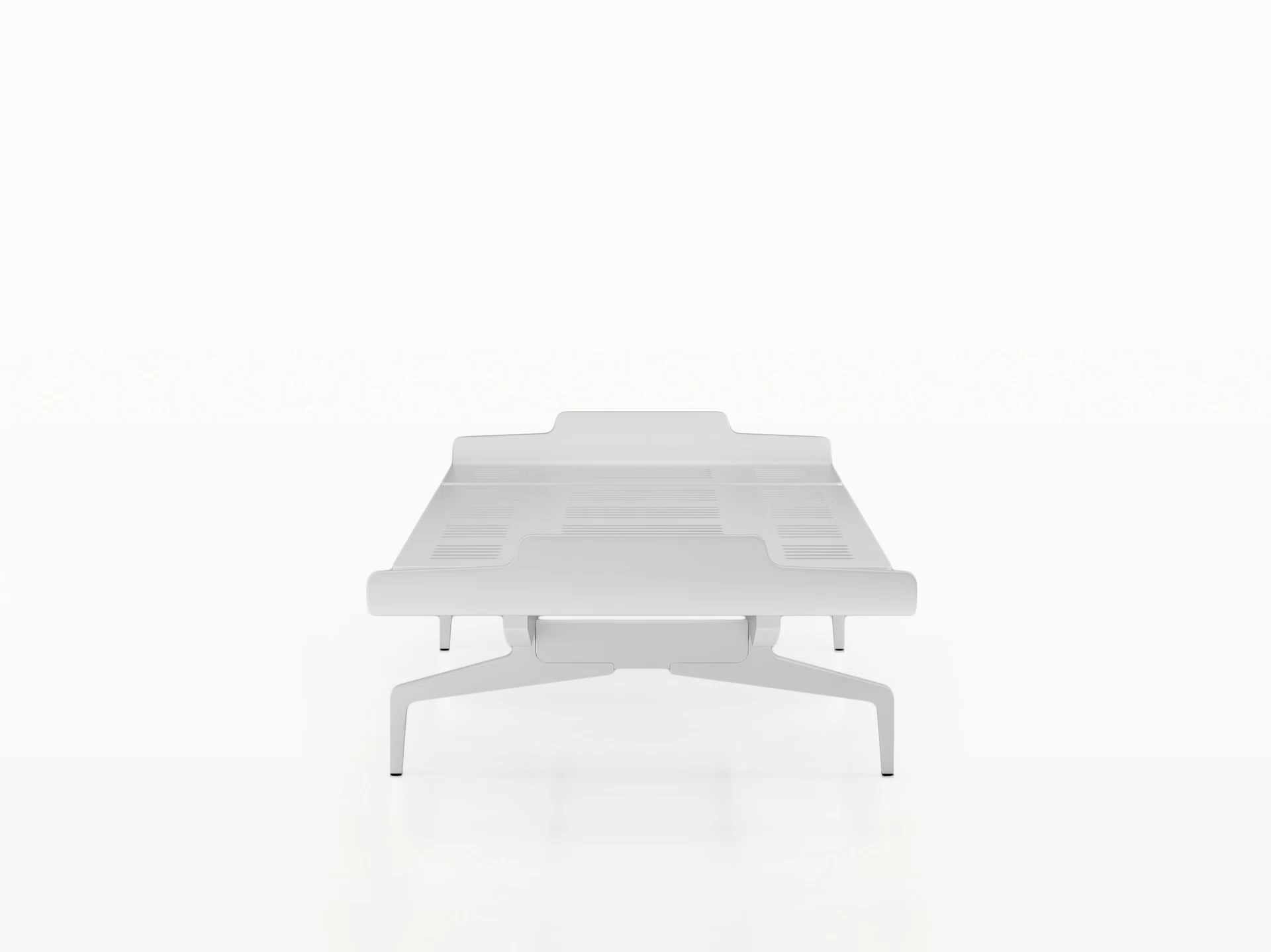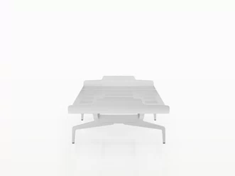 Lit avec tête et pieds avec bord bas laqué mat ou plaqué bois; pieds en fonte d‘aluminium poli ou laqué (granité ou brillant).