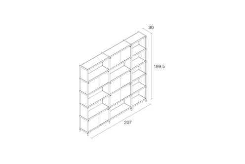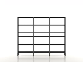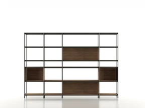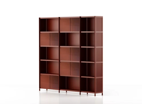 Bibliothèque avec structure en aluminium extrudé laqué. Etagères en métal laqué.