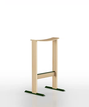 Sgabello alto in legno massello di frassino, piedi in acciaio verniciato a polvere con inserti in feltro o plastica rigida, a scelta in fase d’ordine. Poggiapiedi in estruso di alluminio verniciato dello stesso colore dei piedi. Impilabile orizzontalmente.